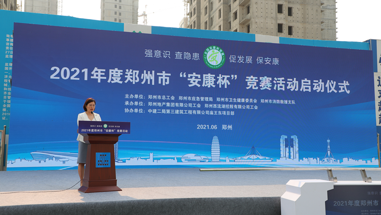 為深入貫徹落實(shí)習(xí)近平總書(shū)記有關(guān)加強(qiáng)安全生產(chǎn)工作的部署和要求,進(jìn)一步強(qiáng)化各級(jí)各部門(mén)、各企業(yè)主體的安全責(zé)任意識(shí),確保我市安全生產(chǎn)形勢(shì)持續(xù)好轉(zhuǎn),職工安全健康不斷鞏固。6月11日上午,由鄭州市總工會(huì)、鄭州市應(yīng)急管理局、鄭州市衛(wèi)生健康委員會(huì)及鄭州市消防救援支隊(duì)主辦,鄭州地產(chǎn)集團(tuán)工會(huì)、鄭州西流湖控股有限公司工會(huì)承辦的鄭州市2021年“安康杯”競(jìng)賽啟動(dòng)儀式在中原新區(qū)廟王東安置區(qū)項(xiàng)目成功舉行。鄭州市相關(guān)組織部門(mén)、市總工會(huì)成員單位、地產(chǎn)集團(tuán)、西流湖公司、各參建單位共200余人參加啟動(dòng)儀式。鄭州市一級(jí)巡視員,市總工會(huì)黨組書(shū)記、主席趙新中、鄭州市衛(wèi)生健康委員會(huì)黨組成員、二級(jí)調(diào)研員楊德林、鄭州市應(yīng)急管理局三級(jí)調(diào)研員安春茂、鄭州市消防救援支隊(duì)副支隊(duì)長(zhǎng)、滅火救援指揮部部長(zhǎng)李隆、鄭州市總工會(huì)副主席宋少丹、鄭州地產(chǎn)集團(tuán)有限公司監(jiān)事會(huì)主席、工會(huì)主席李靜波、鄭州地產(chǎn)集團(tuán)西流湖公司黨支部書(shū)記、董事長(zhǎng)、總經(jīng)理 吉獻(xiàn)亮,中建二局第三建筑工程有限公司西北分公司黨委副書(shū)記、執(zhí)行總經(jīng)理趙海軍出席儀式。啟動(dòng)儀式由市總工會(huì)勞動(dòng)和經(jīng)濟(jì)部部長(zhǎng)宋慧主持。