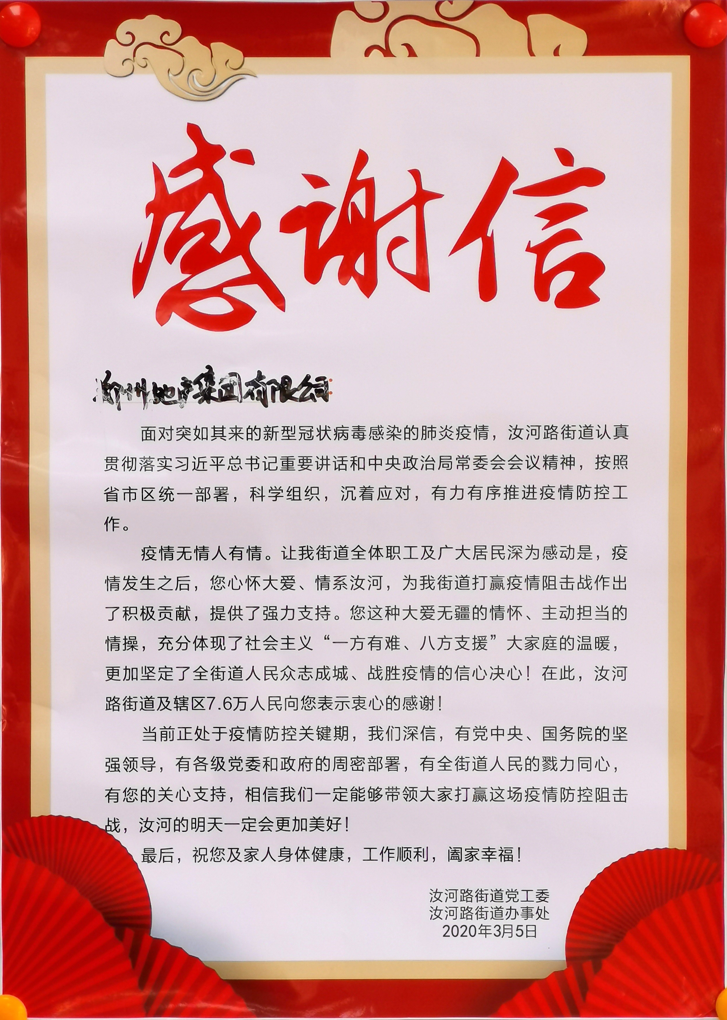 桐淮社區(qū)書(shū)記王輝代表社區(qū)工作人員和志愿者向集團(tuán)領(lǐng)導(dǎo)送上《感謝信》,并表示集團(tuán)的慰問(wèn)讓一線工作人員心里充滿(mǎn)了溫暖,也進(jìn)一步堅(jiān)定了開(kāi)展疫情防控的信心和決心。在地產(chǎn)集團(tuán)等社會(huì)各界的關(guān)心關(guān)注下,在無(wú)數(shù)雷鋒式志愿者的共同努力下,我們一定會(huì)打贏新冠肺炎疫情防控這場(chǎng)硬仗。