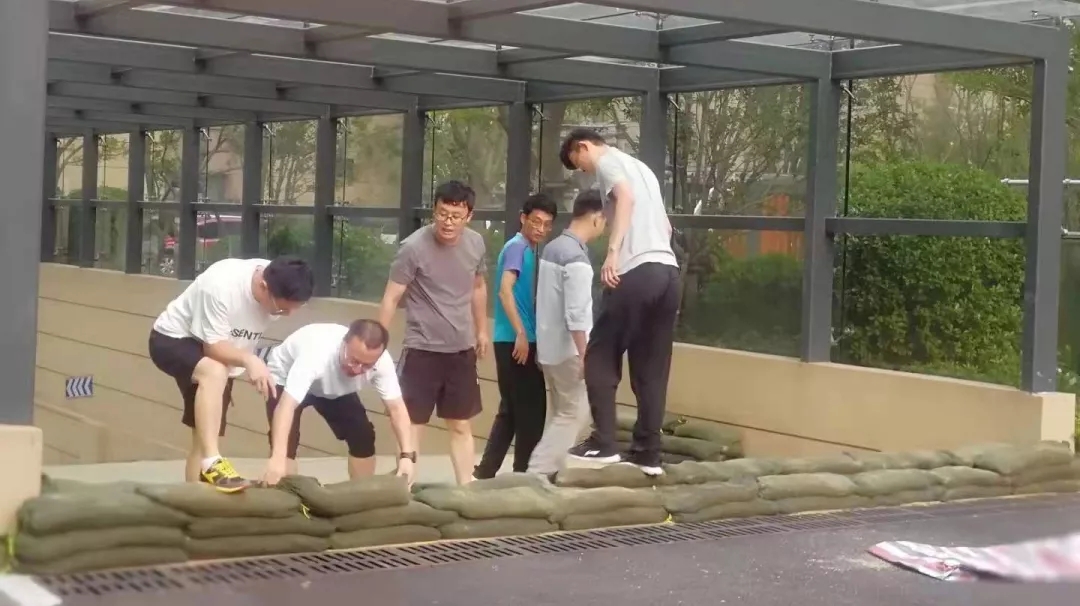 8月21日下午,接到公司關(guān)于提前、周密、高標(biāo)準(zhǔn)備戰(zhàn)抗洪搶險(xiǎn)救災(zāi)工作的通知。戰(zhàn)天斗地的鄭地商都人敢于斗爭、善于斗爭,厲兵秣馬戰(zhàn)水魔。有的搬運(yùn)沙袋,有的運(yùn)輸擋水板,有的封堵門口和地庫門。深夜12點(diǎn)、凌晨3點(diǎn),面對(duì)分批運(yùn)送至公司的近700條沙袋,商都抗洪搶險(xiǎn)救災(zāi)應(yīng)急小分隊(duì)心往一處想,勁往一處使,團(tuán)結(jié)一致將沙袋擺放至指定位置,充分顯示了鄭地商都控股公司戰(zhàn)勝水魔的強(qiáng)大戰(zhàn)斗力。